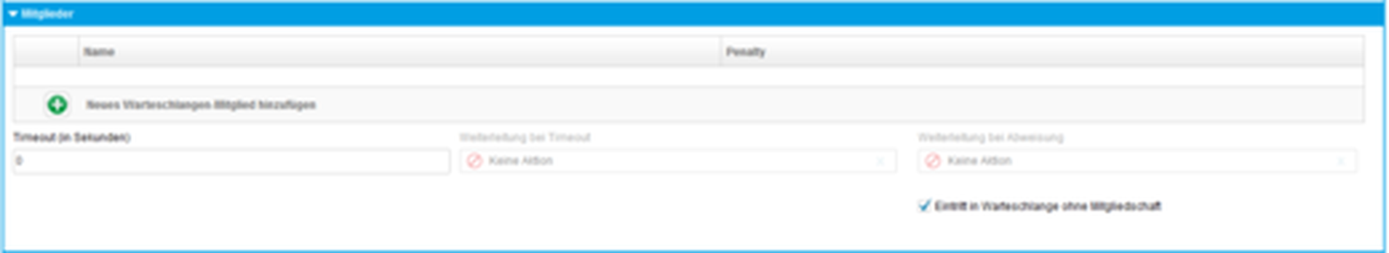 | Warteschlange | Name, Nebenstelle, Durchwahl und Gewichtung | |