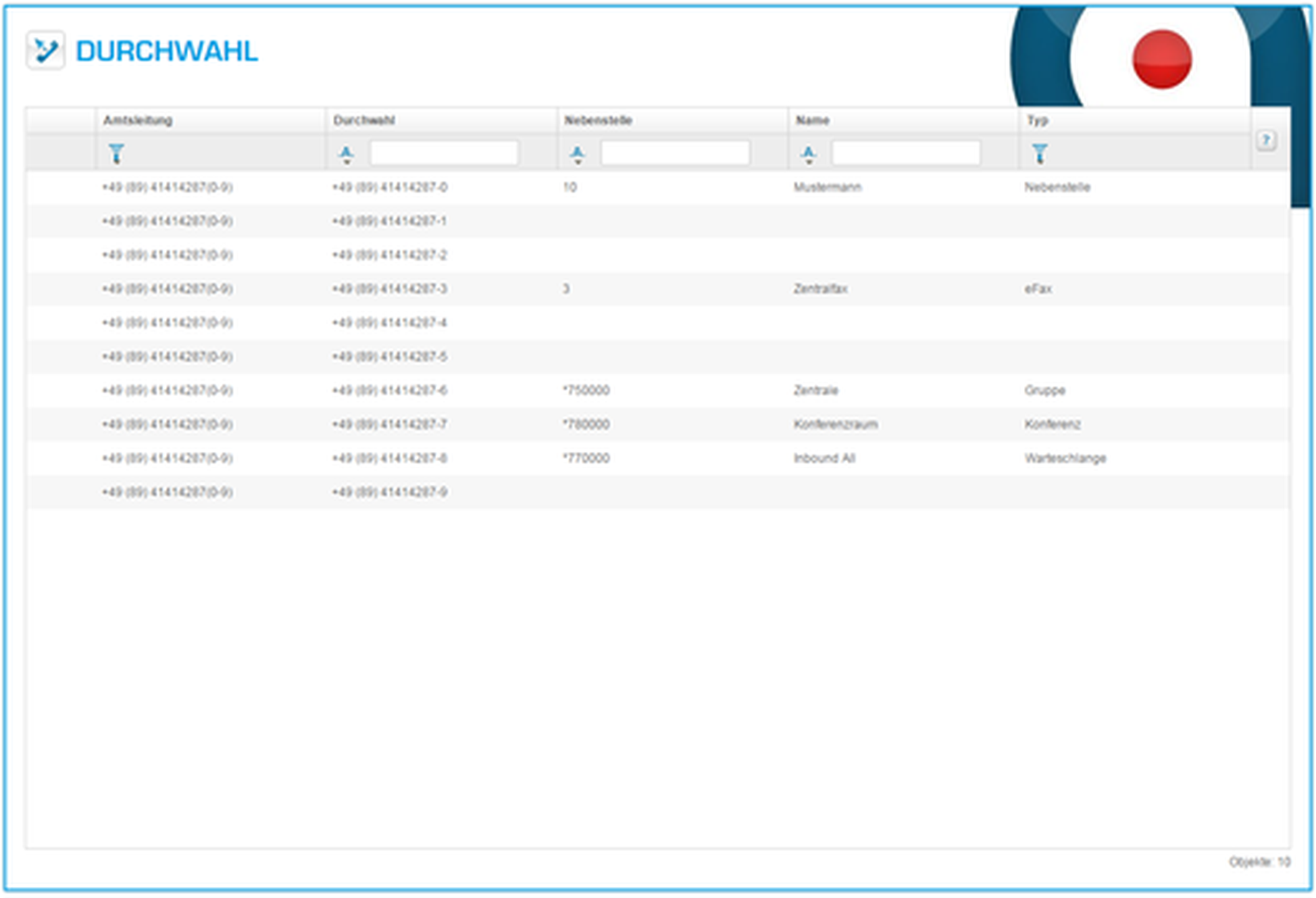 | Gruppe | Name, Nebenstelle, Durchwahl und Pick-up Gruppe | |