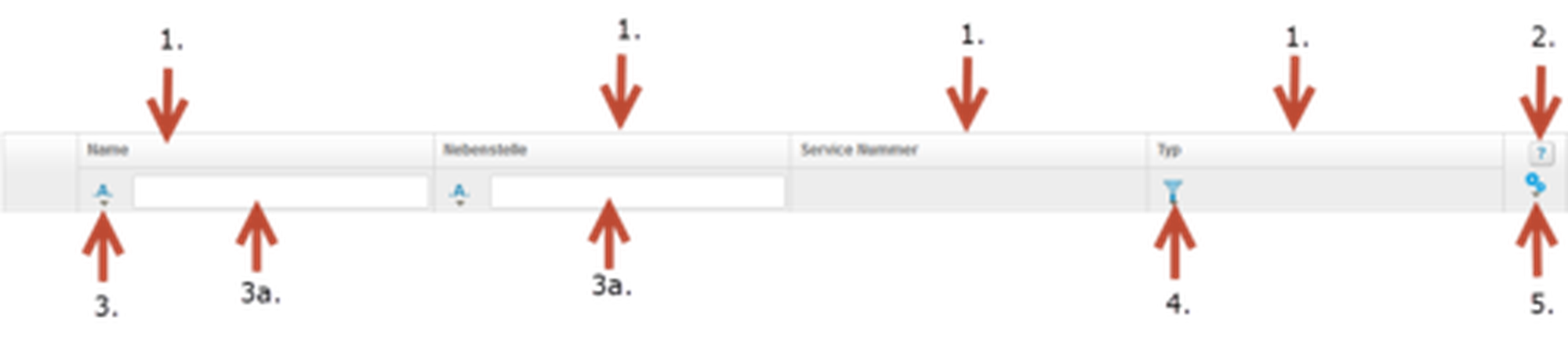 | 1. | Kopfzeile, hier können die Sortierkriterien eingegeben werden. Beschreibung unter Kopfzeile. |