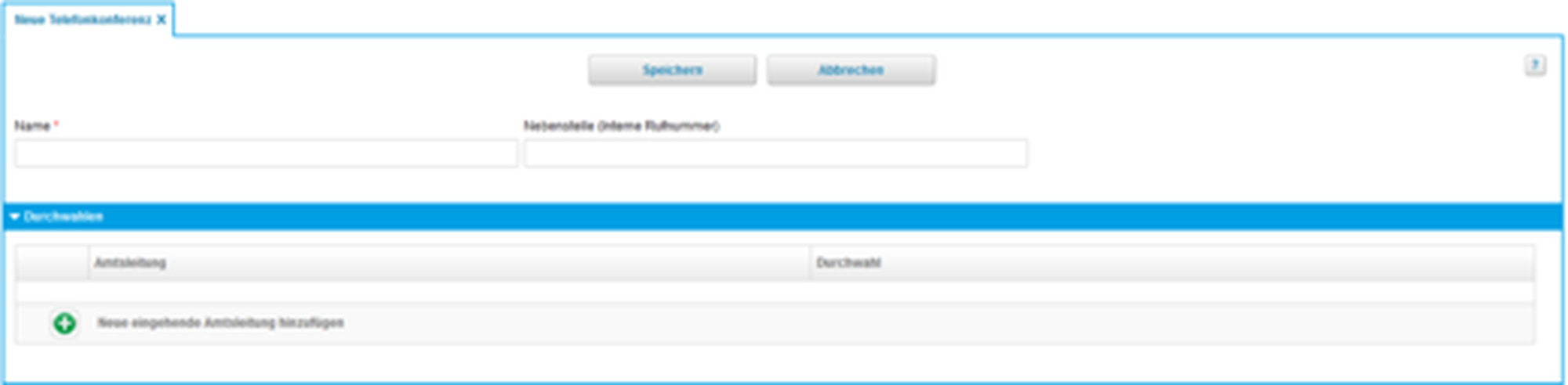 | Telefonkonferenz | Name und Nebenstelle | |