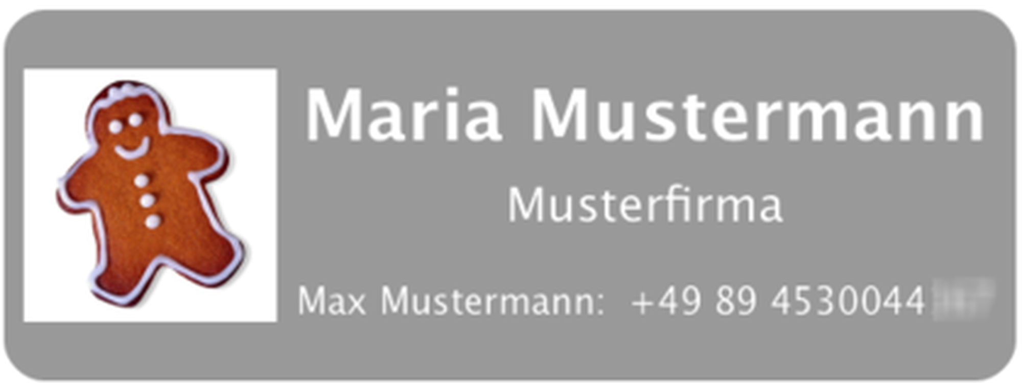 ⇒Bei einem eingehenden Anruf erscheint nun das Screenpopup-Fenster. Falls der Anrufer in Ihrem Mac Adressbuch als Kontakt hinterlegt ist, werden verfügbare Informationen wie Name, Firma und Rufnummer angezeigt.
