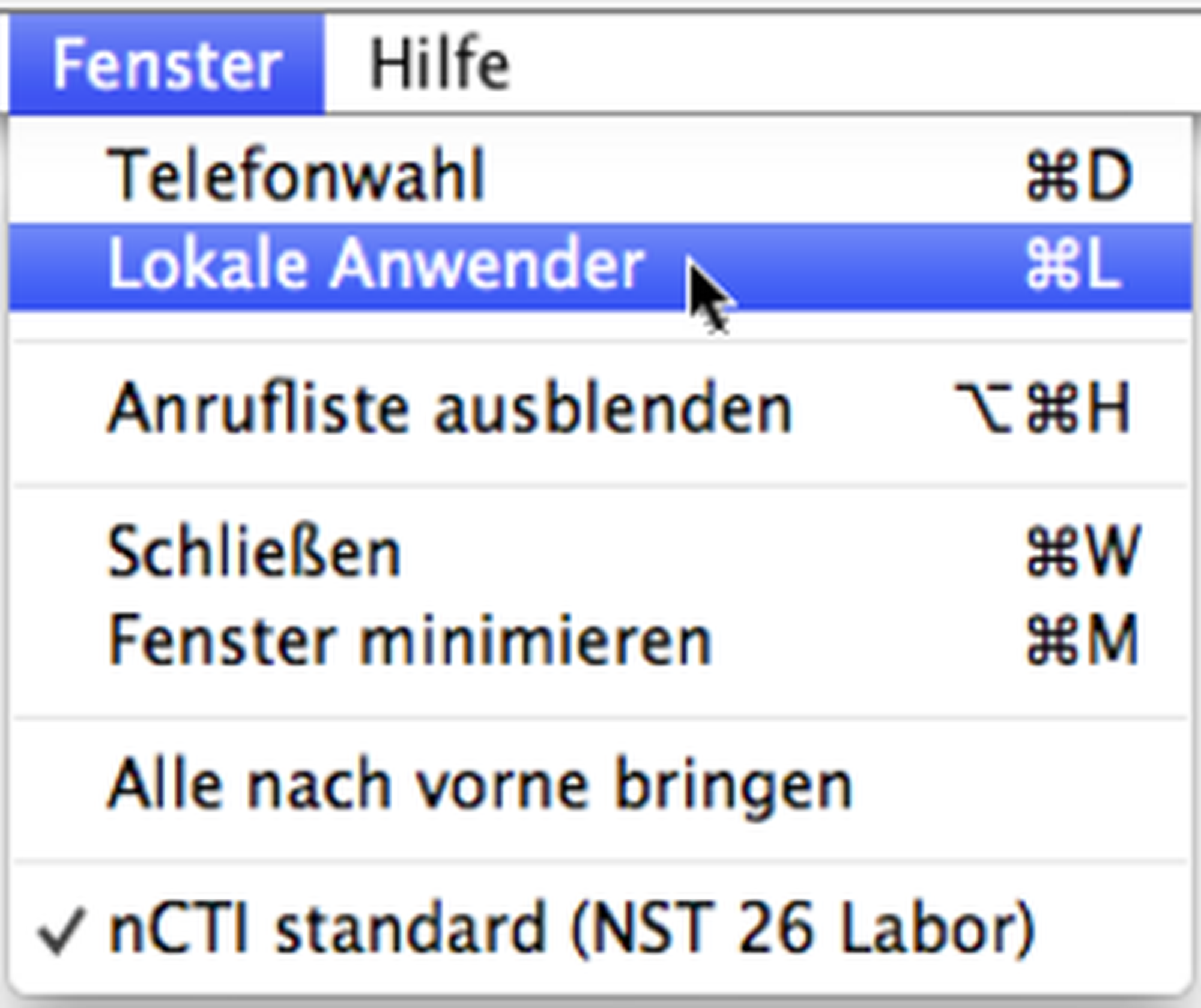 Um diese einzusehen, klicken Sie im Menü auf "Fenster" und anschließend auf "Lokale Anwender".