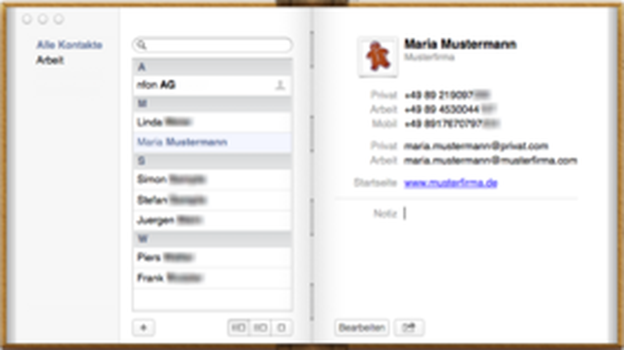 Der NCTI standard für Mac berücksichtigt alle hinterlegten Mac OS X Kontakte für die Anzeige der Kontaktdaten mittels Screenpopup.