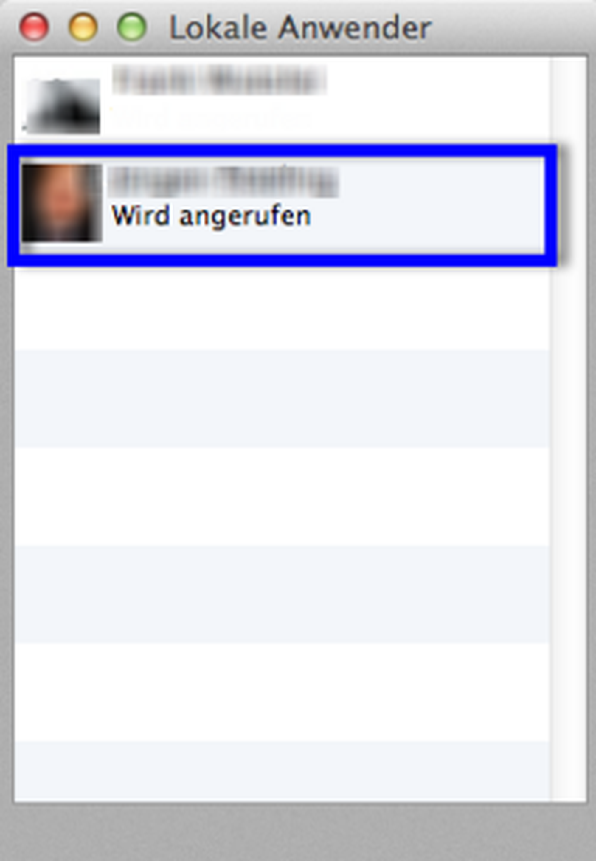 Per Doppelklick auf einen Anwender wird dieser angerufen und im Wahlfenster angezeigt.