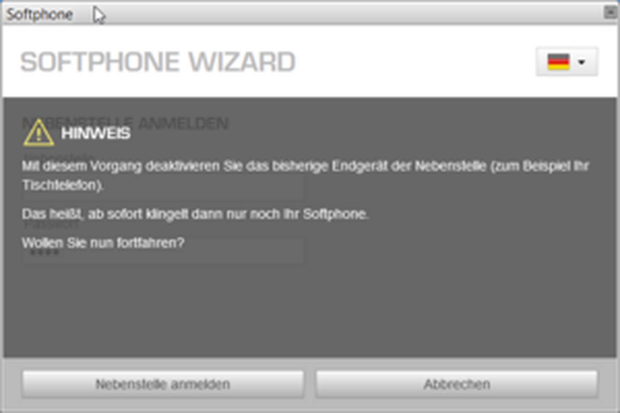 "Mit diesem Vorgang deaktivieren Sie das bisherige Endgerät der Nebenstelle (zum Beispiel Ihr Tischtelefon).