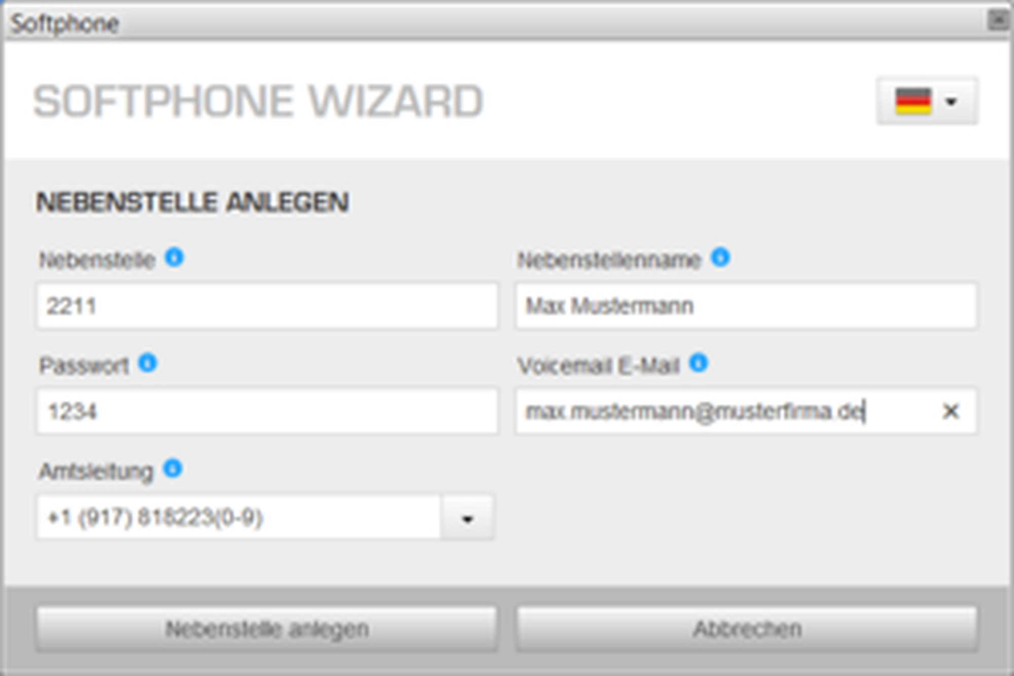Um eine neue Nebenstelle anzulegen, befolgen Sie folgende Schritte: