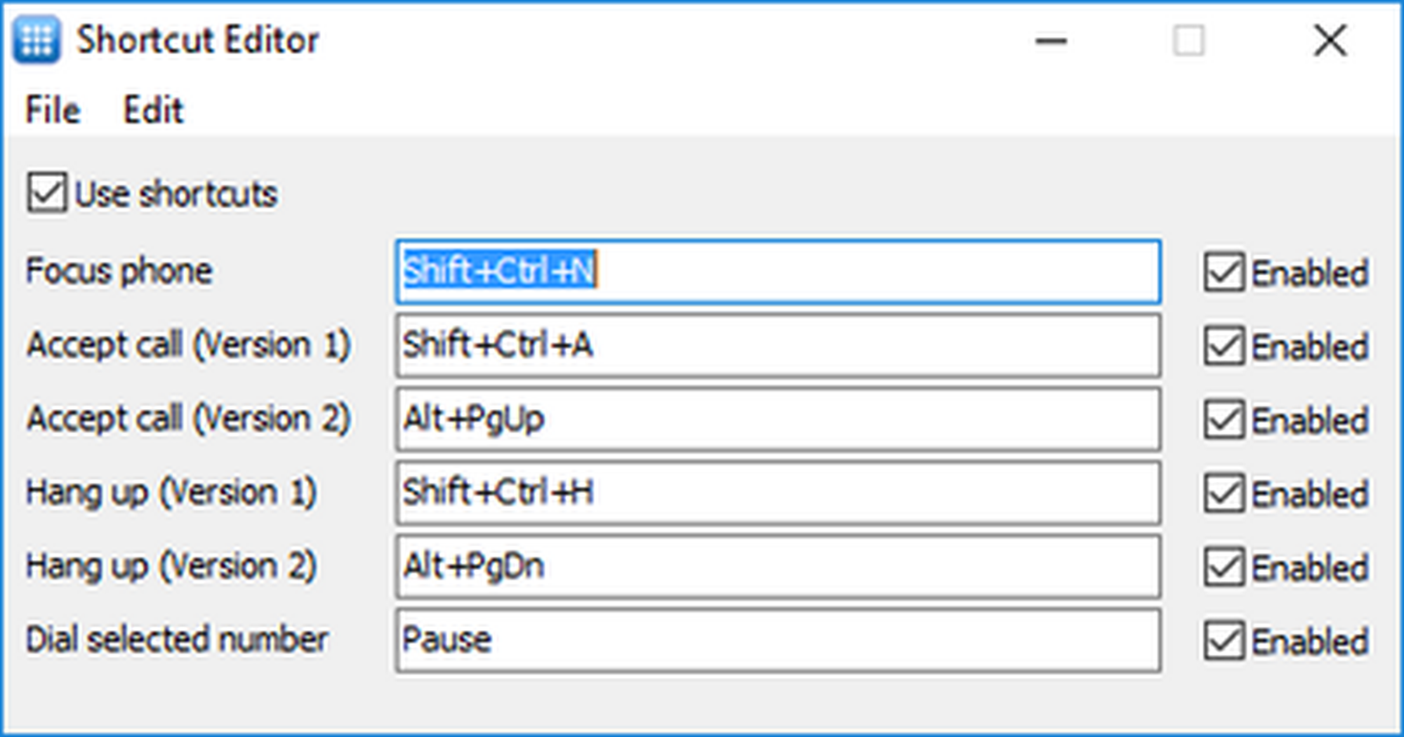 Das Softphone verfügt über einen Shortcut Editor, mit dem Shortcuts selbstständig vergeben werden können.