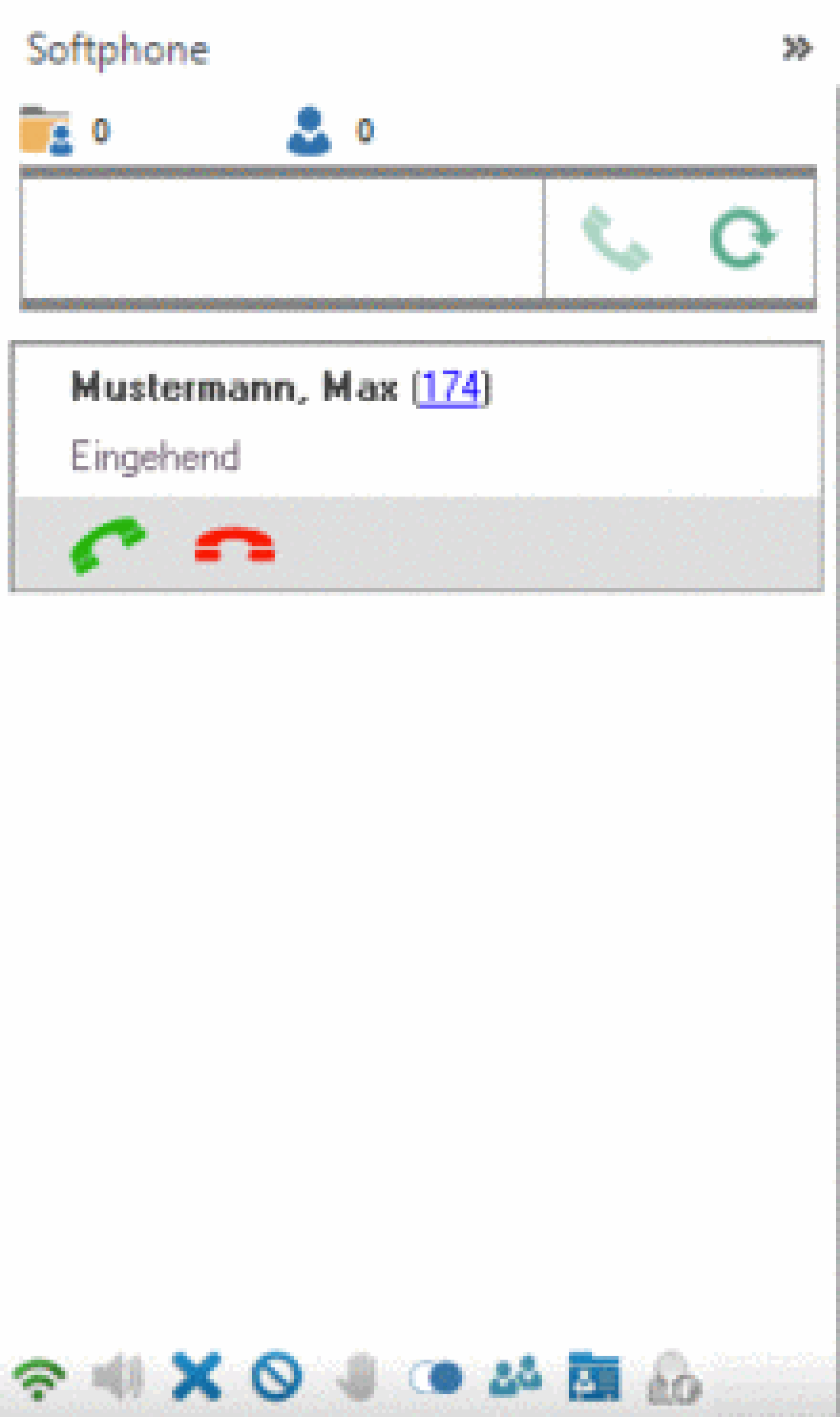 - Nach Anmeldung an der Anlage signalisiert das Softphone ein Funksymbol