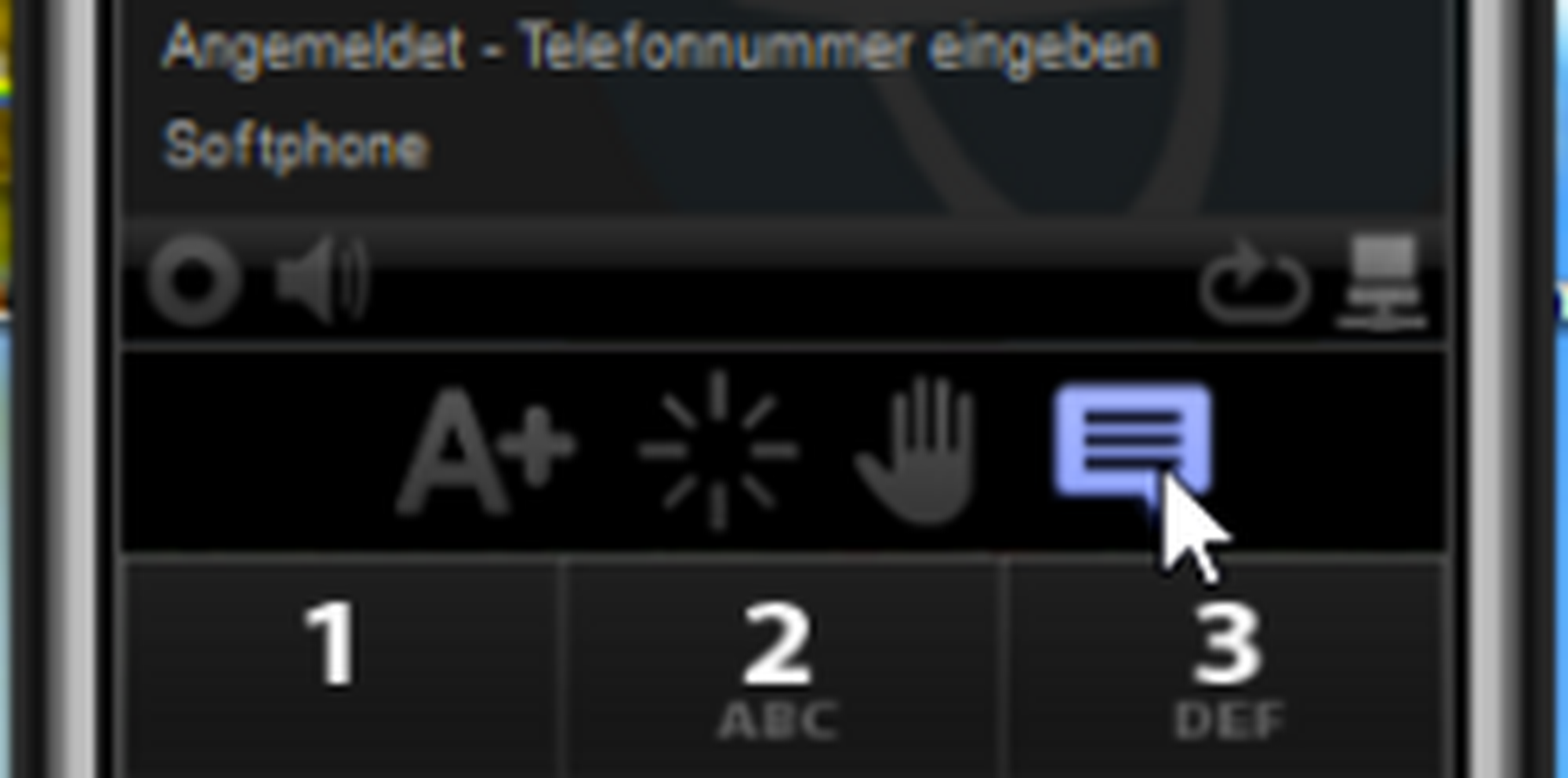 Wenn Sie Ihr Gespräch über das gleiche Audiogerät wie den Klingelton hören möchten, klicken Sie bitte auf das Lautsprecher-Symbol in Ihrem Softphone. Um den Vorgang wieder rückgängig zu machen, klicken Sie wiederholt auf das Lautsprecher-Symbol