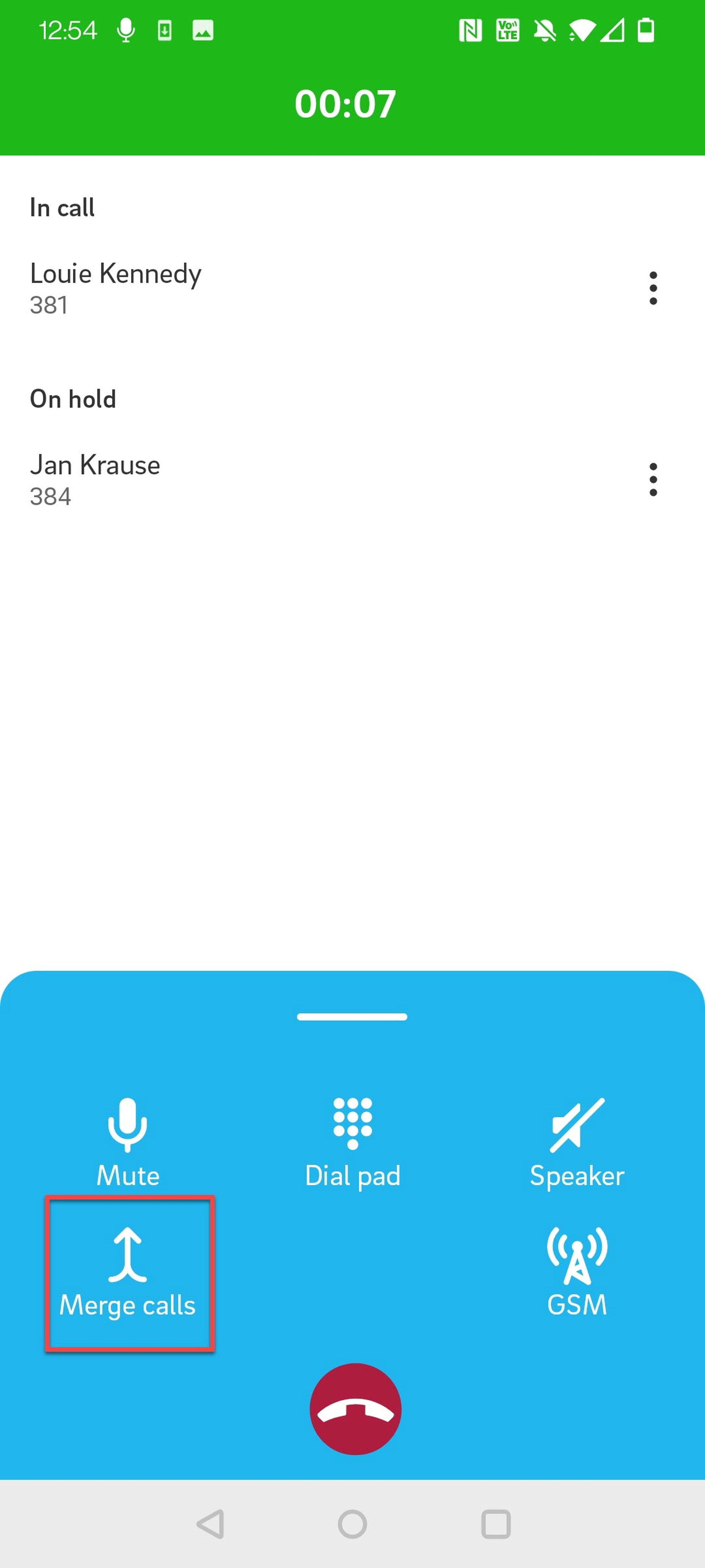 2. A search bar opens. Search your contacts as usual and start a call to the contact you want to add to the conference. Once the call is answered, the new participant automatically joins your conference.