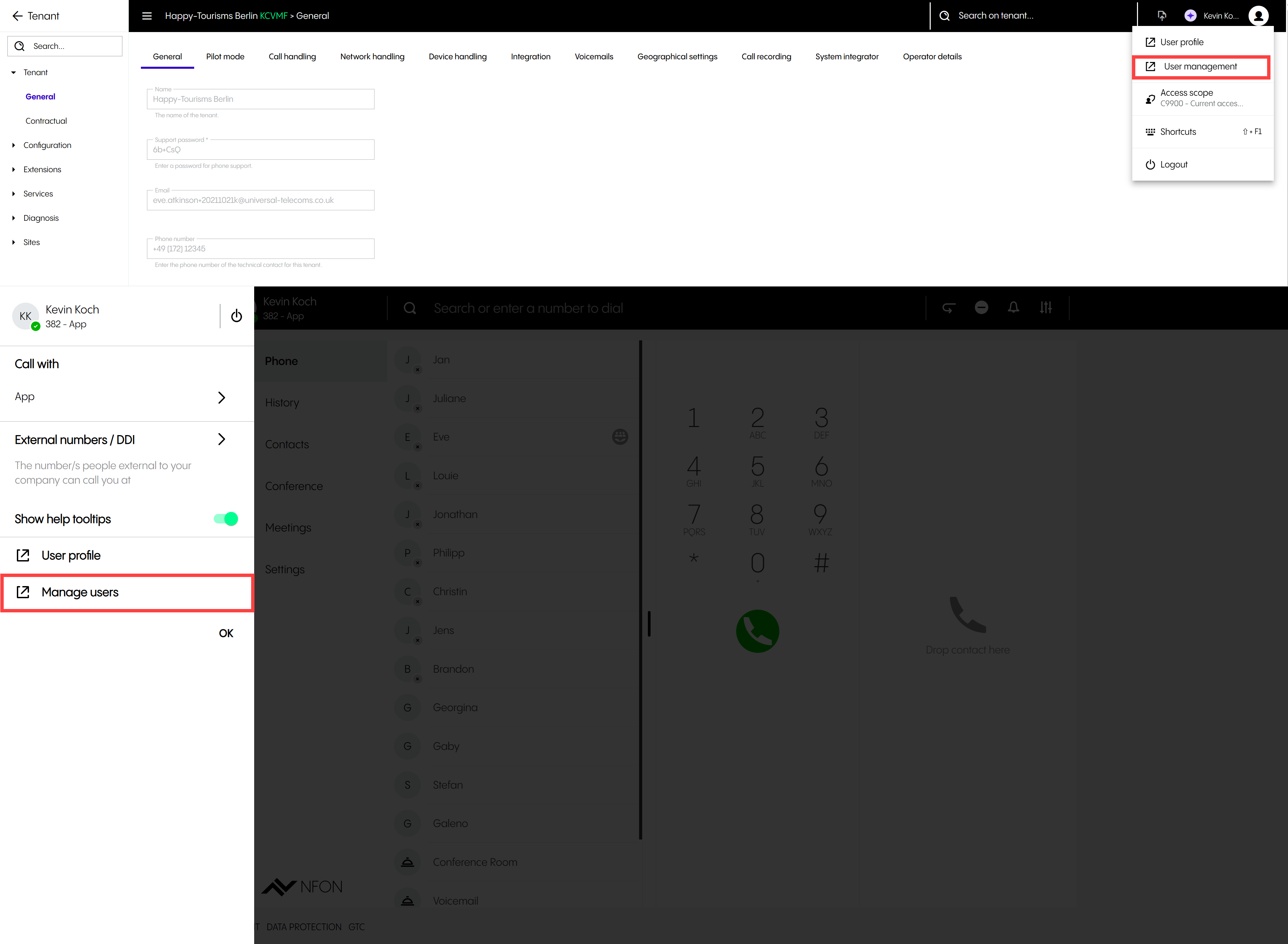 Click on Manage users (Web/Desktop app)/User management (Admin Portal).